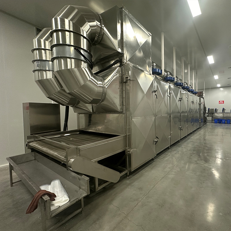 在烘干過程中,桑葚烘干流水線通常采用連續式設計,能夠在電腦程序控制下設定多個時間段進行干燥處理。例如,*階段采用烘干模式,不排濕,讓烘干房溫度升到50度左右;第二階段設為烘干+排濕模式,目標濕度為60%,目標溫度設為55度。這種多級及組合干燥的方式能夠實現幾種傳熱形式的綜合應用,保證烘干品質的同時減少能源消耗。