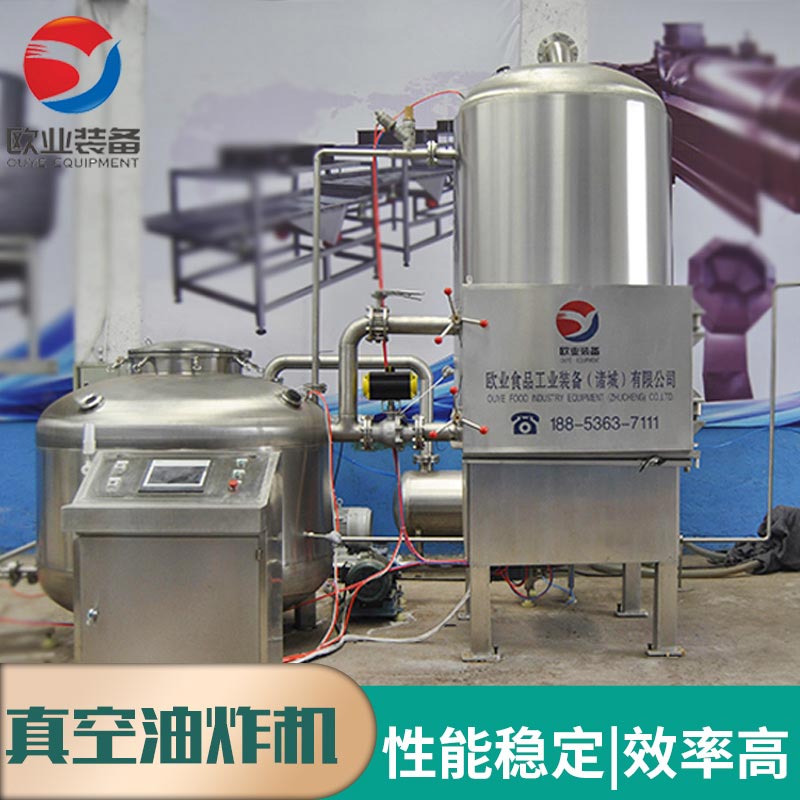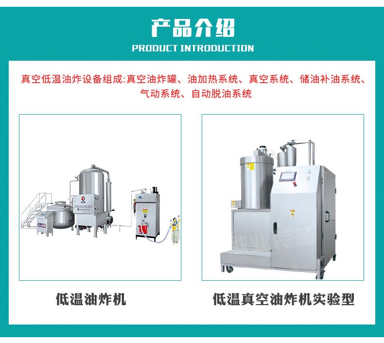真空低溫油炸設(shè)備組成:真空油炸罐、油加熱系統(tǒng)、真空系統(tǒng)、儲(chǔ)油補(bǔ)油系統(tǒng)、氣動(dòng)系統(tǒng)、自動(dòng)脫油系統(tǒng)